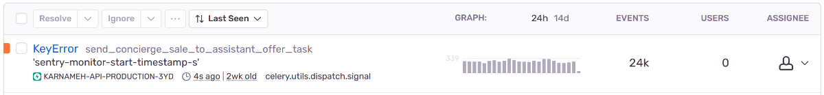 با یکم وقت گذاشتن و خوندن کدها، متوجه شدم که Sentry(SDK) قبل از اجرا شدن تسک های Celery، یک سری Metadata ست میکنه، مثلا زمان شروع اجرای تسک و اطلاعات دیگه. و بعد از اون تسک اجرا میشد و تمام.