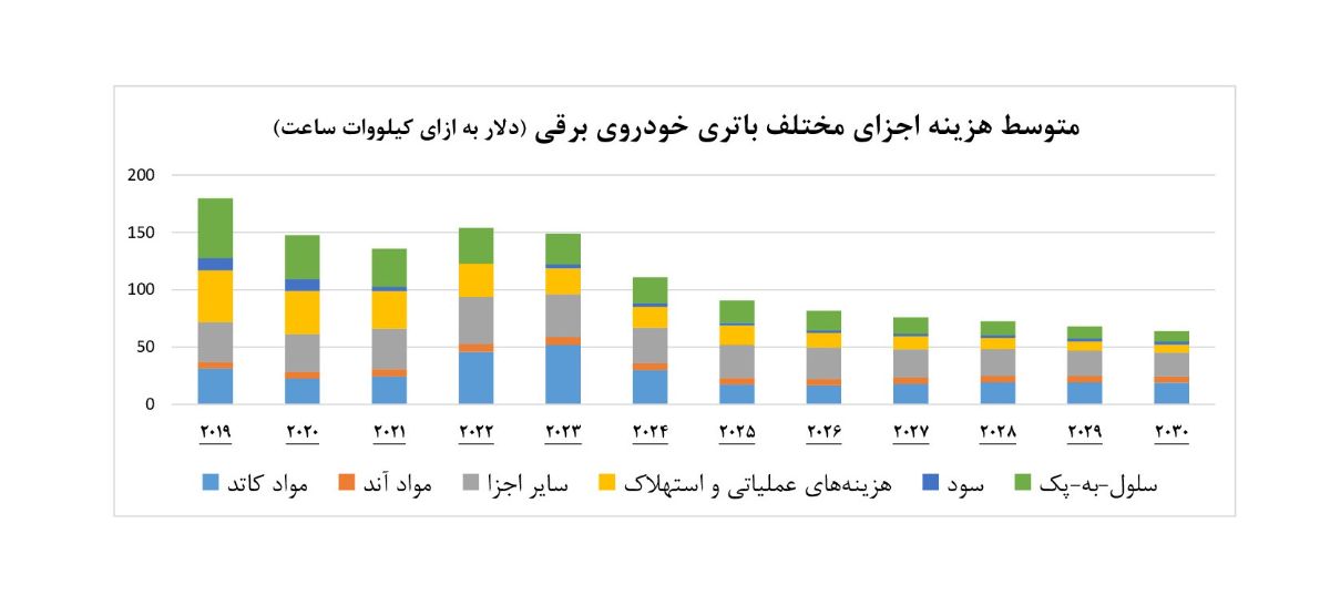 طبق جدول و نمودارهای مشخص شده، پیشبینی میشود به علت پیشرفت تکنولوژی، گسترش استفاده از خودروهای برقی در سالهای آینده، هزینه تولید باتری نیز کاهش خواهد یافت و مسیری را طی خواهد کرد که دههای گذشته شاهد طی کردن همچین مسیری توسط خودروهای بنزینی بودیم.