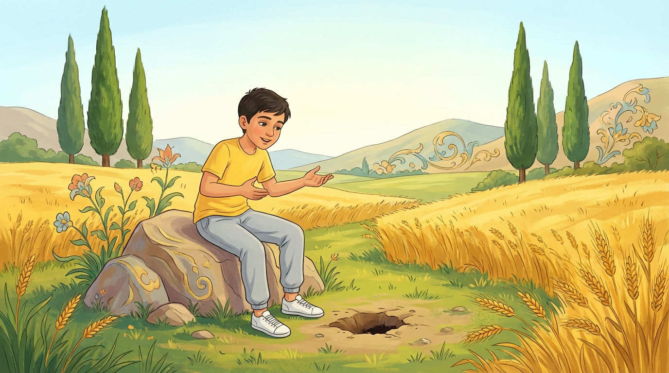 گذشت و بار دیگری که سوی دِهِمان روانه شدیم ، باز هم از دست بزرگان خانه گریختم و در ظل گرمای تابستان که هر کسی را می سوزاند، وارد دشت و صحرا شدم. سپس سوراخی یافتم و بر زَبَرِ سنگی در جانب آن نشستم. آن گاه در ذهن خود می پروراندم که حالاست که پس از مدّت ها به آرزوی خویشتن برسم.