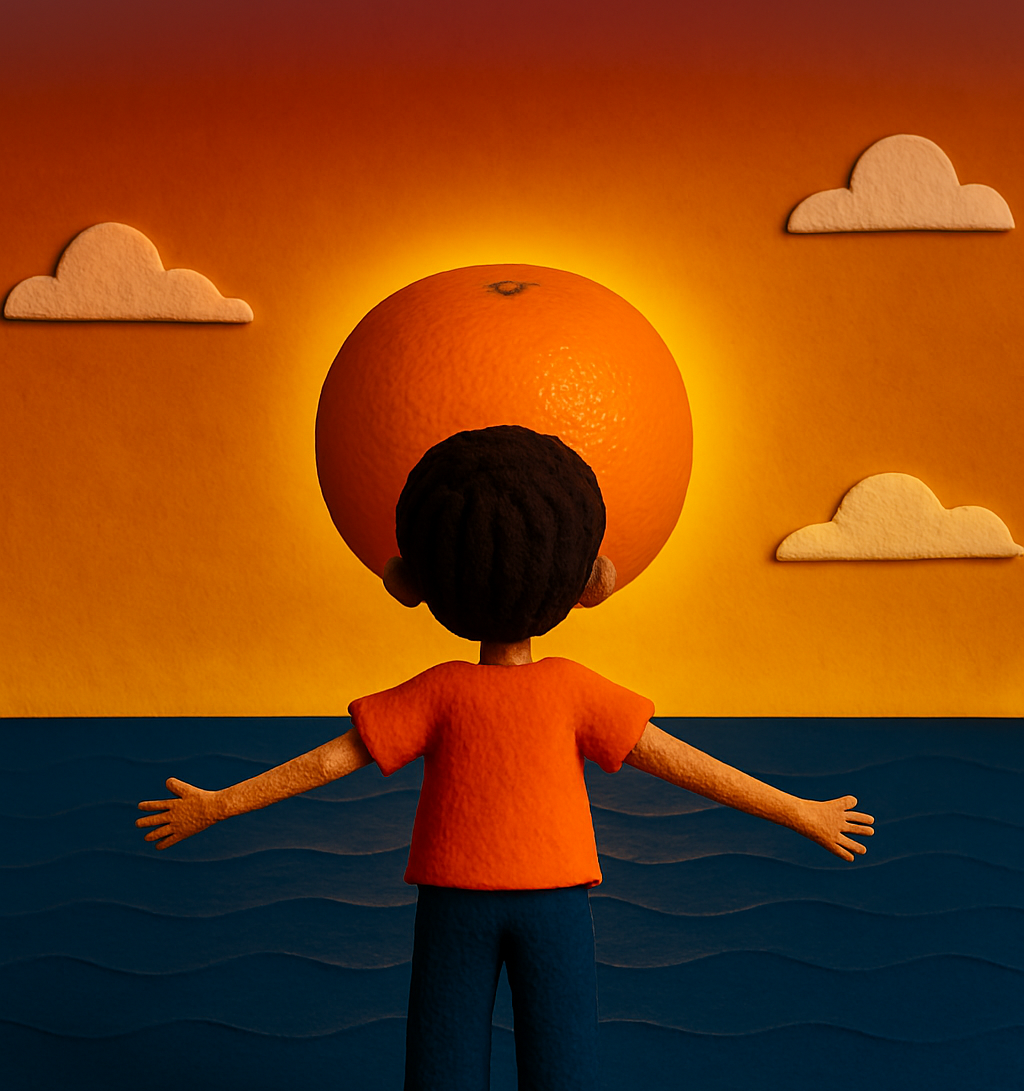 به سمتش میروم بدون اینکه ذره ای دوباره خیس شوم. چون روی زمین نیستم دارم پرواز کنان به سمت خورشید خوشمزه ام میروم. به آن می رسم. خیلی بزرگ است. حالا با چه پوستش را بکنم؟