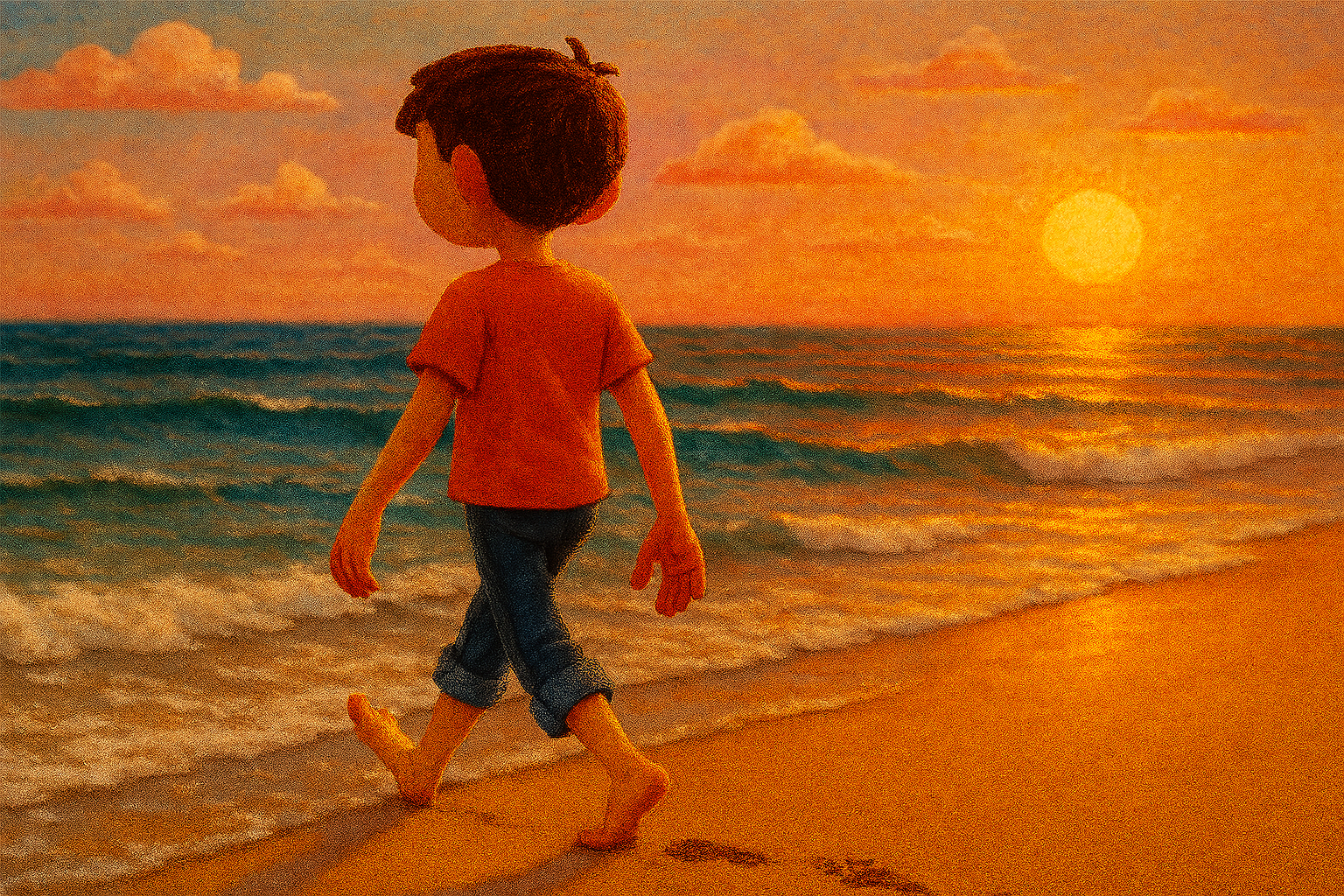 آفتاب کم کم دارد غروب میکند. برادر بزرگترم این دفعه حرفش درست بود. غروب دریا واقعا زیباست. از این منظره زیباتر من ندیده ام!