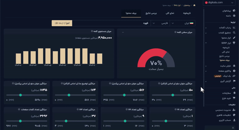 با وارد کردن «قهوه»، میزفا تولز توی کمتر از ۲ دقیقه، ۱۹۵۹ کلمه مشابه بهت میده. علاوه بر این، میبینی مثلا فلان کلمه سرچ بیشتری داره یا رقابتش کمتره. اینطوری دقیقتر میتونی تصمیم بگیری روی چه موضوعی مقاله بنویسی.