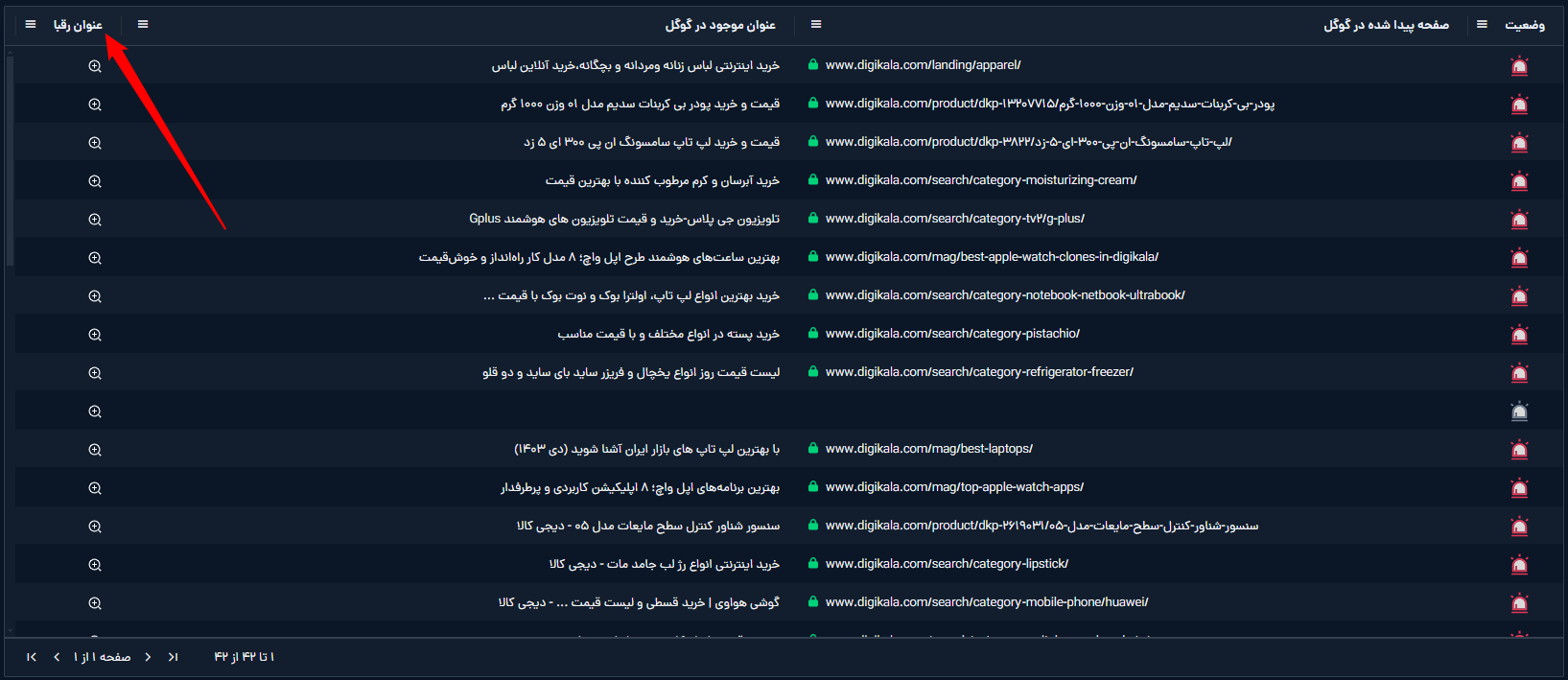 برای هر کلمه کلیدی، بررسی کنید کدوم صفحه از رقبا ظاهر شده، چه رتبهای داره و از چه کلمات کلیدی برای بهینهسازی استفاده کرده. این اطلاعات بهتون کمک میکنه استراتژی محتوای خودتون رو بهتر بچینید.