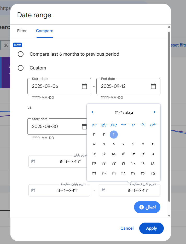 📊 در بخش Compare <- Date range