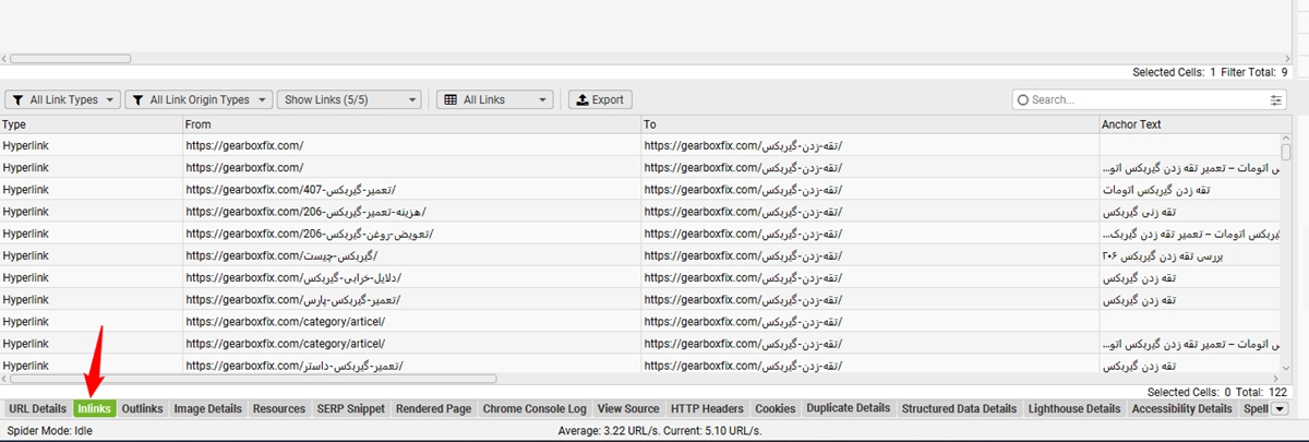 ۱. وارد ابزار خزش شو و به تب «پیوند داخلی» برو