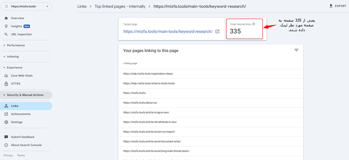 البته یادتون باشه: سرچ کنسول همه لینکهای داخلی رو نشون نمیده و ممکنه بعضیها رو با تأخیر گزارش کنه.