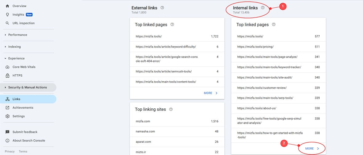وارد حساب GSC بشید. از منوی سمت چپ روی گزینه Links کلیک کنید.