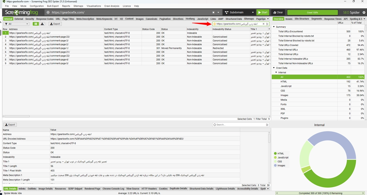 بعد از خزش کامل، URL صفحه مورد نظر رو سرچ کنید.