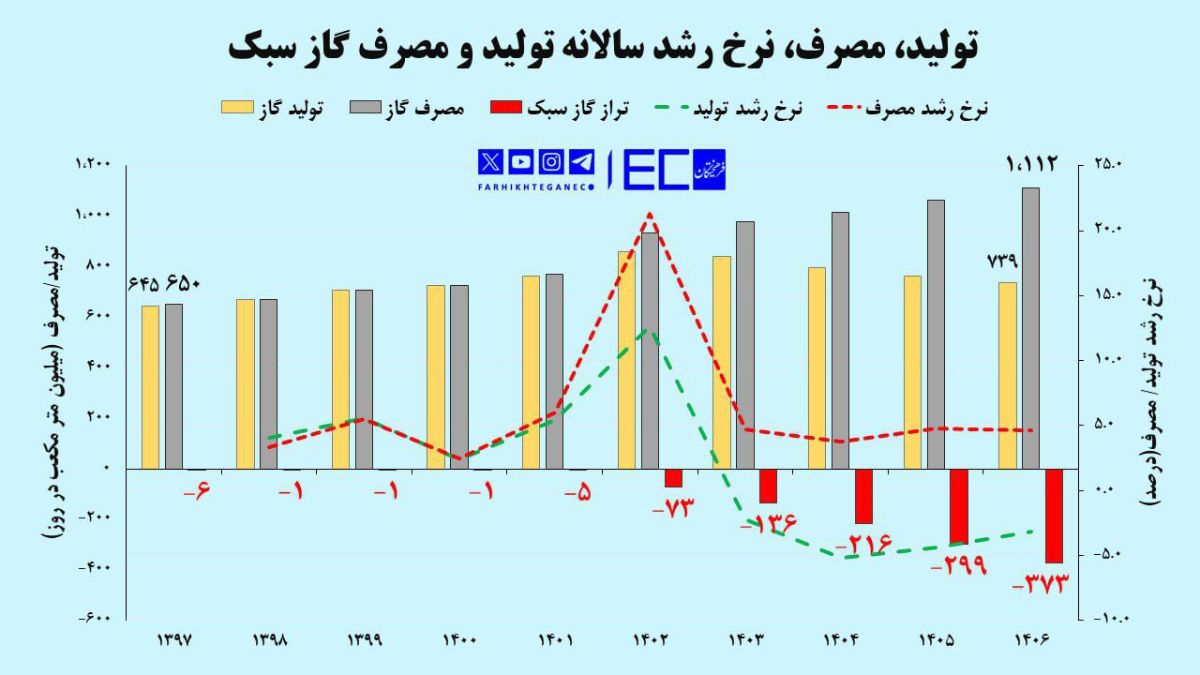 ناترازی گاز ایران تا سال ۱۴۰۶ پنج برابر میشود