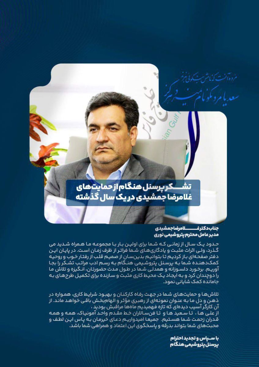 تشکر پرسنل پتروشیمی هنگام از رهبری الهامبخش غلامرضا جمشیدی