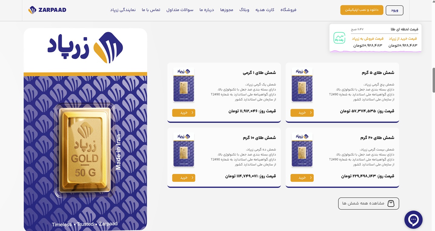 زرپاد یکی از وبسایتهای تخصصی خرید و فروش آنلاین طلا و سکه است که بیشتر بر بخش سرمایهگذاری تمرکز دارد. کاربران میتوانند در این سایت قیمت لحظهای طلای آبشده، شمش و سکه را مشاهده و خرید خود را بهصورت آنلاین ثبت کنند. زرپاد با داشتن مجوز رسمی از اتحادیه و صدور فاکتور معتبر، شفافیت کامل در معاملات را تضمین میکند. برای کسانی که بهجای جواهر، به طلا بهعنوان سرمایه نگاه میکنند، زرپاد یکی از حرفهایترین و معتبرترین گزینههاست. طراحی سایت مینیمال و کاربرپسند بوده و امکان دسترسی سریع به اطلاعات قیمت و محاسبه وزن طلا فراهم شده است.