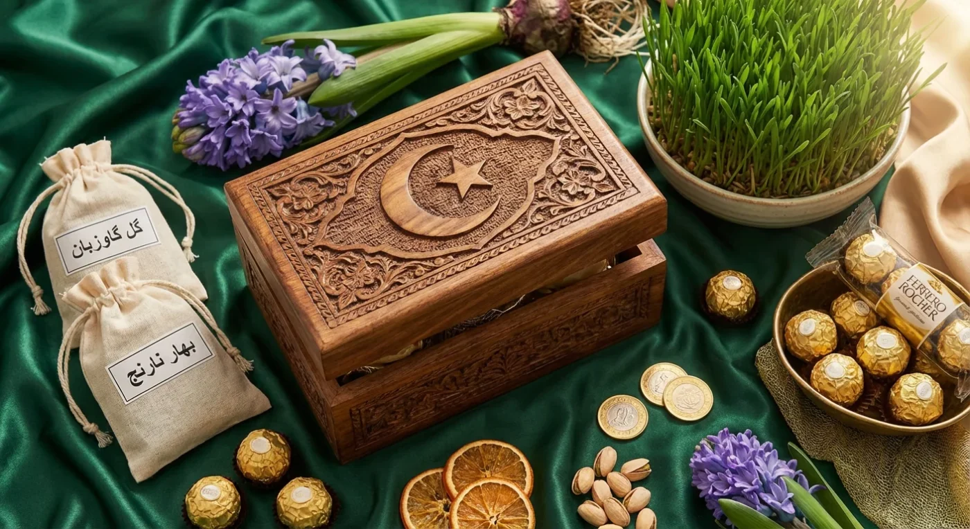 ظواهر بستهبندی اولین تاثیر را میگذارد. استفاده از جعبههای چوبی، سبد یا هاردباکس لوکس ارزش هدیه را افزایش میدهد. طراحی بستهبندی باید با رنگهای برند و تم نوروزی همخوانی داشته باشد.