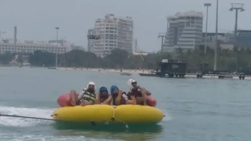 وقتی از پاراسل پایین آمدم، هنوز آدرنالین بدنم تخلیه نشده بود که دلم یکم هیجان روی آب میخواست. با چند نفری که توی اسکله آشنا شده بودم، سوار تیوپهای شاتل شدیم تا روی موجها بالا و پایین بپریم. راننده قایق که دید ما پایه هستیم، با سرعت زیاد دور میزد تا تیوپ روی آب بیشتر سر بخورد.