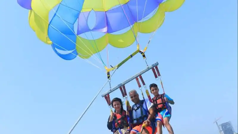 خیلیها فقط به عشق تجربه کردن تفریحات آبی کیش به این جزیره میروند و من هم نمیخواستم بدون امتحان کردنشان به شهر خودم برگردم. اولین چیزی که در ساحل نظر هر کسی را جلب میکند، چترهای رنگی بزرگی است که در آسمان هستند. نوبت پاراسل من که شد، جلیقه نجات را پوشیدم و سوار قایق شدم تا نوبت پرواز به من برسد.