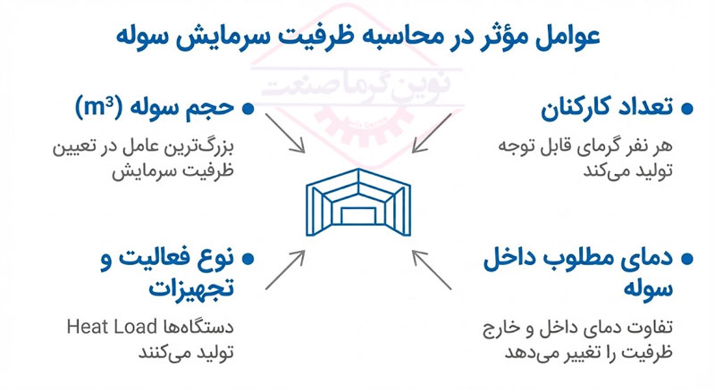 تعداد کارکنان و حجم تجهیزات صنعتی فعال در سوله، بار حرارتی فضا را تغییر میدهد. حضور نیروی انسانی، موتورهای صنعتی و دستگاههای پرمصرف، خود منبع تولید گرما هستند و باید در طراحی سیستم لحاظ شوند.