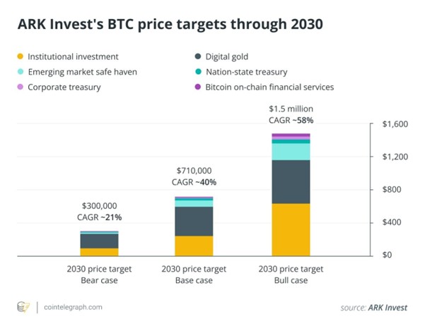 کَتی وود، یکی از حامیان پرشور بیت کوین، پیشبینی کرده است که این ارز دیجیتال ممکن است تا سال ۲۰۳۰ به ۱.۵ میلیون دلار برسد.