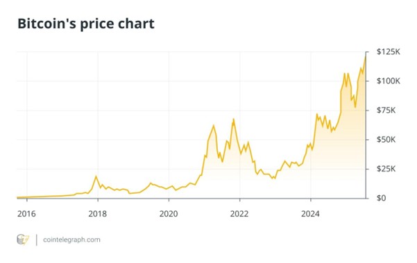 امیدواری نسبت به قیمت BTC در طول “هفته کریپتو” در واشنگتن دیسی در ژوئیه ۲۰۲۵ به اوج جدیدی رسید، جایی که بیت کوین به اوج تاریخی ۱۲۳,۱۶۶ دلار رسید.