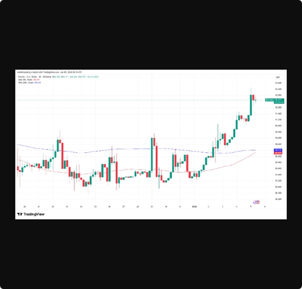 دادههای TradingView نشان میدهد که بیتکوین در پنج روز گذشته تا ۶.۶ درصد افزایش یافته است.