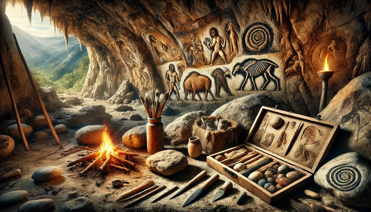 ابزارهای مورد استفاده برای کنده کاری و نقاشی درون غارها