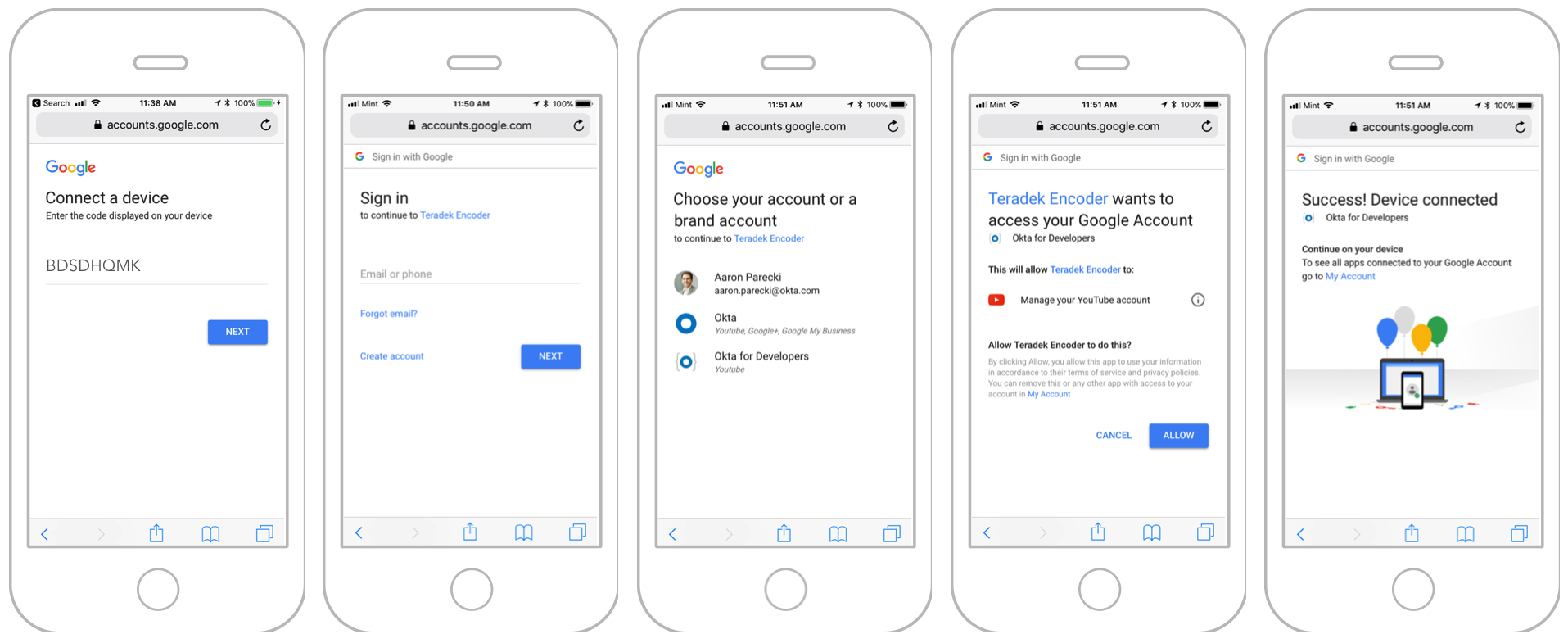 }این پیام خطا بیانگر آن است که کاربر هنوز روند Login را به اتمام نرسانده ولی کد هم هنوز منقضی نشده است. دستگاه باید پس از گذشت مقدار زمان مشخصی دوباره این درخواست را ارسال کند. در همین حین کاربر در حال Login مثلا در یوتیوب است. همانطور که در عکس زیر میبینید: