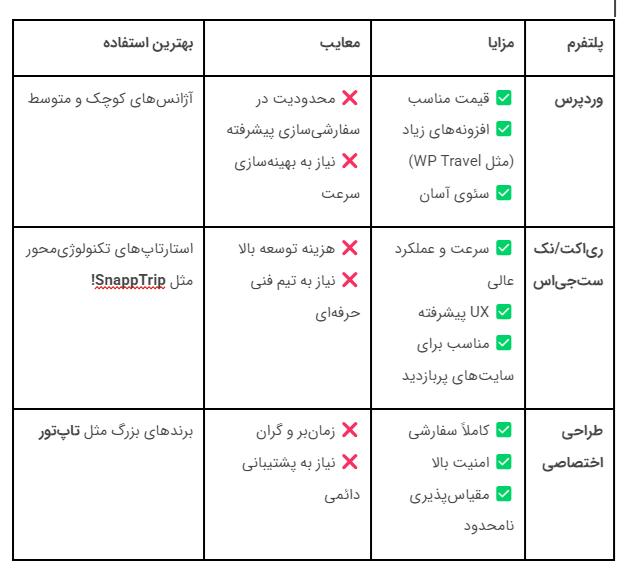 ۸. مقایسه طراحی سایت با وردپرس، نکستجیاس و ریاکت برای آژانسهای مسافرتی
