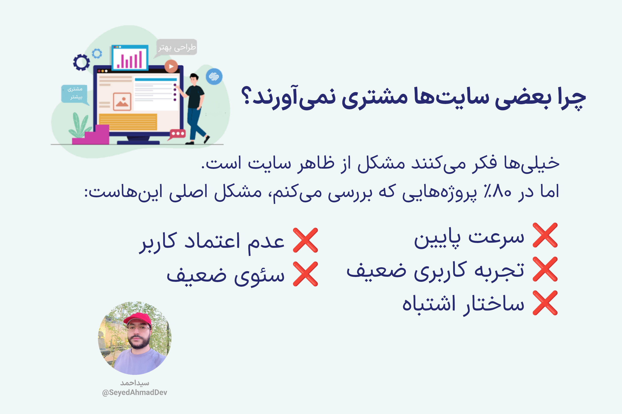 اما در ۸۰٪ پروژههایی که بررسی میکنم، مشکل اصلی اینهاست: