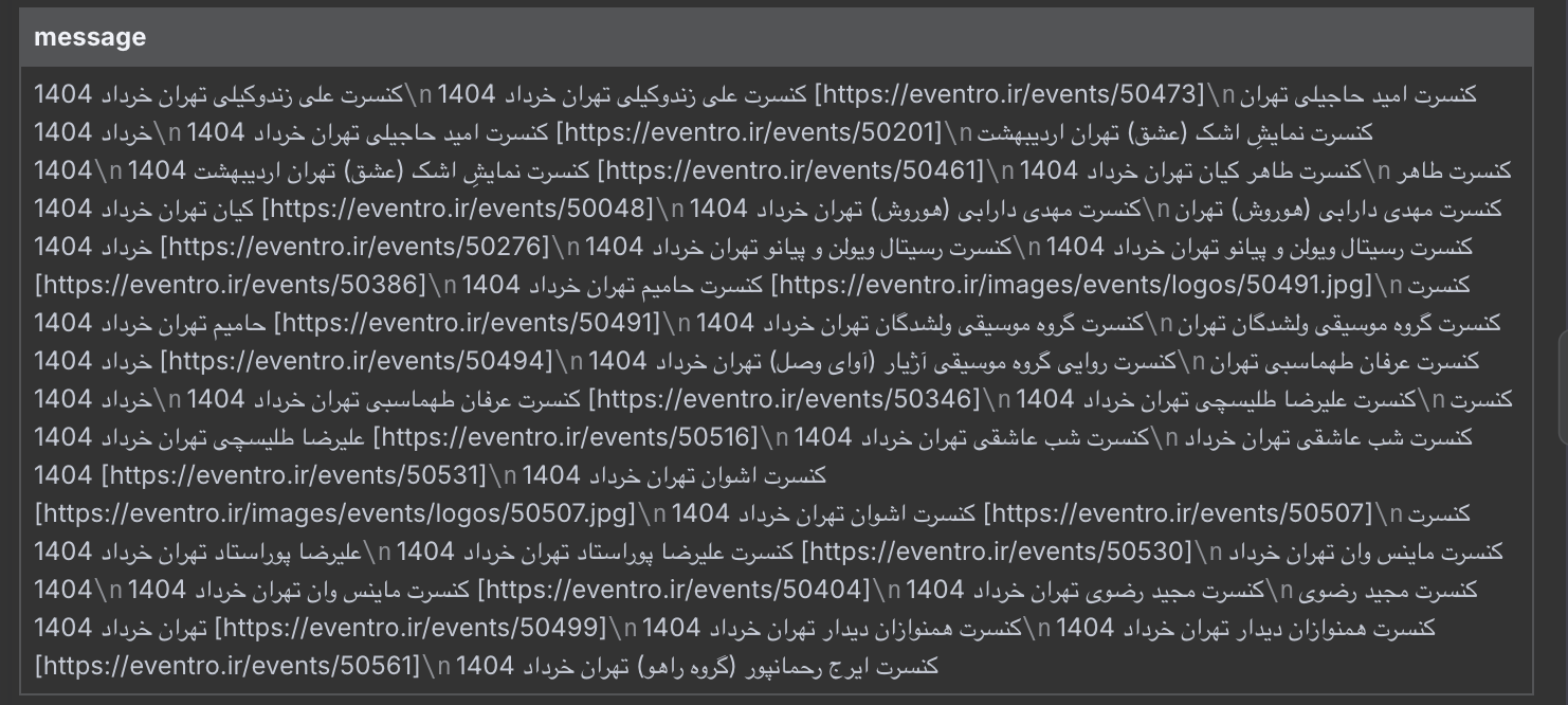 عملیات استخراج لیست کنسرتها، همونطور که میبینید، شامل چند مرحله بود: