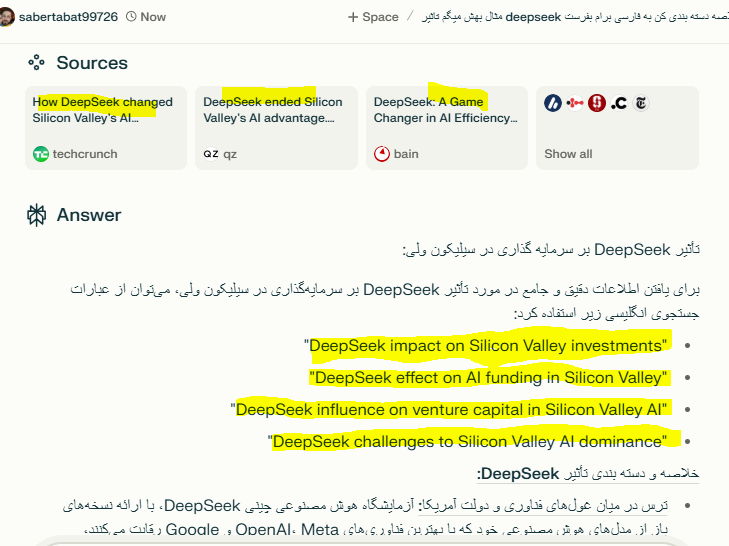 اگر شما هم مثل من به دنبال یک ابزار هوش مصنوعی جستجوگر جایگزین گوگل هستید که بتواند عبارات خاصی را در سایتهای چینی و عربی و انگلیسی و ... جستجو کرده و نتایج را به زبان فارسی خلاصه کند با من همراه باشید.