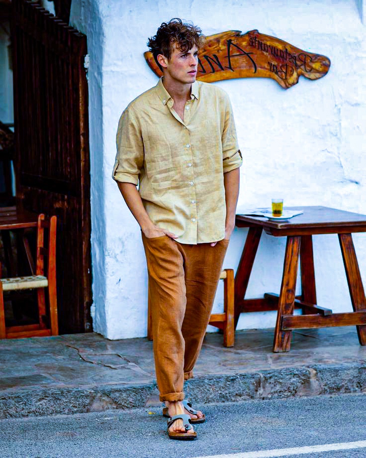 برای یک تیپ روزمره و راحت، شلوار لینن با تی شرت سفید و صندل چرمی گزینه ای بی نقص است. اگر استایل رسمی تر می خواهید، یک پیراهن دکمه دار کتانی همراه با کفش لوفر می تواند بهترین انتخاب باشد.