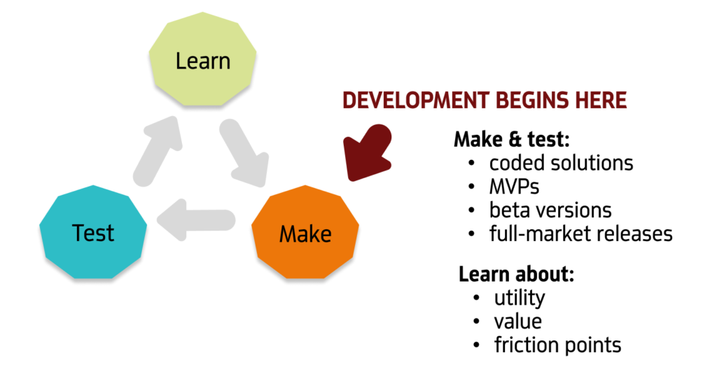 خوشبختانه، این فرآیند یادگیری ➔ ساخت ➔ آزمایش را میتوان در هر روش توسعه محصول موجود به کار برد. این روش به ویژه برای محصولاتی که جدید هستند یا برای بازاری جدید در حال توسعهاند، مناسب است.