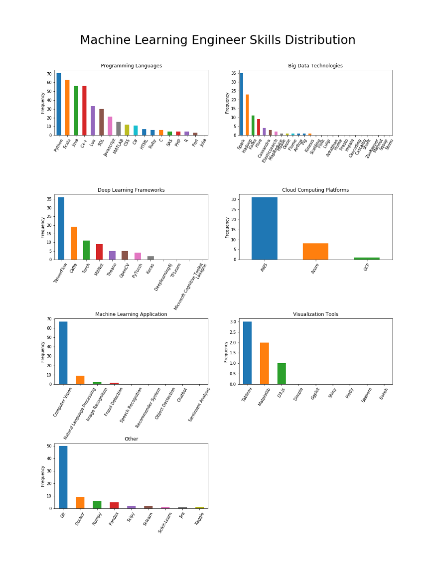 پایتون به عنوان زبان غیر رسمی یادگیری ماشین است و جای تعجب ندارد که به عنوان زبان برتر برای مهندسان یادگیری ماشین مطرح میشود. به دلیل نیاز به پیادهسازی الگوریتم ها از ابتدا و استقرار مدلهای ML در محیطهای داده بزرگ، زبانهای مربوطه مانند C + + و اسکالا نیز مهم هستند. به طور کلی، به نظر میرسد که نیاز زبانها در مقایسه با دو نقش دیگر گسترش بیشتری دارد.