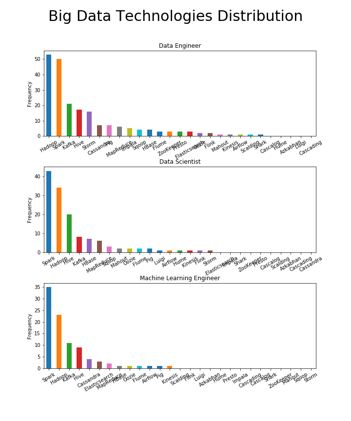 فقط برای مهندسان داده، به هادوپ کمی بیشتر از اسپارک اشاره شدهاست، اما به طور کلی، اسپارک قطعا چارچوب کلاندادهای است که شخص باید اول از همه یاد بگیرد. کاساندرا برای مهندسان مهمتر از دانشمندان است، در حالی که به نظر میرسد استورم تنها مربوط به مهندسان داده باشد.