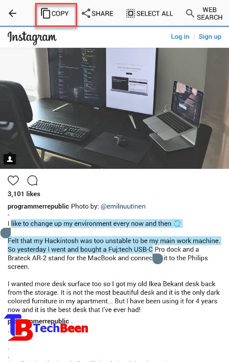 آموزش Copy کردن متن (Caption) در اینستاگرام