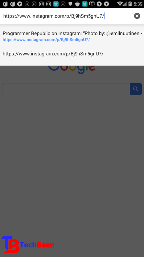 گام دوم برای کپی برداری از متن پست Instagram این است که لینک کپی شده را در نواز جست و جو مرور گر خود سرچ کنید نمایید. شما مرورگر موبایلتان را باز کنید (مرورگر پیشنهادی کروم) داخل جایی که سرچ میکنید همیشه لینک کپی شده را پیست کنید و منتظر باشید صفحه مورد بالا بیاید.