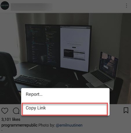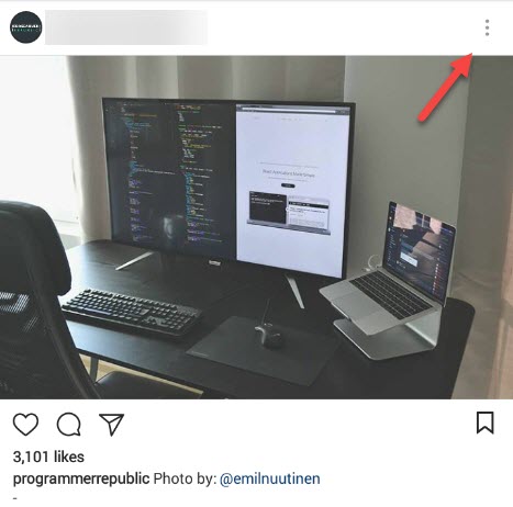 حال برای Copy کردن لینک پست شما باید بر روی سه نقطه کنار پست کلیک کنید.