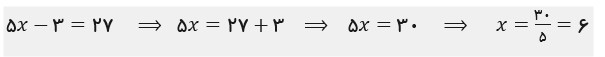 فرض کنید می خواهیم معادله مقابل را حل کنیم: 5x-3=27