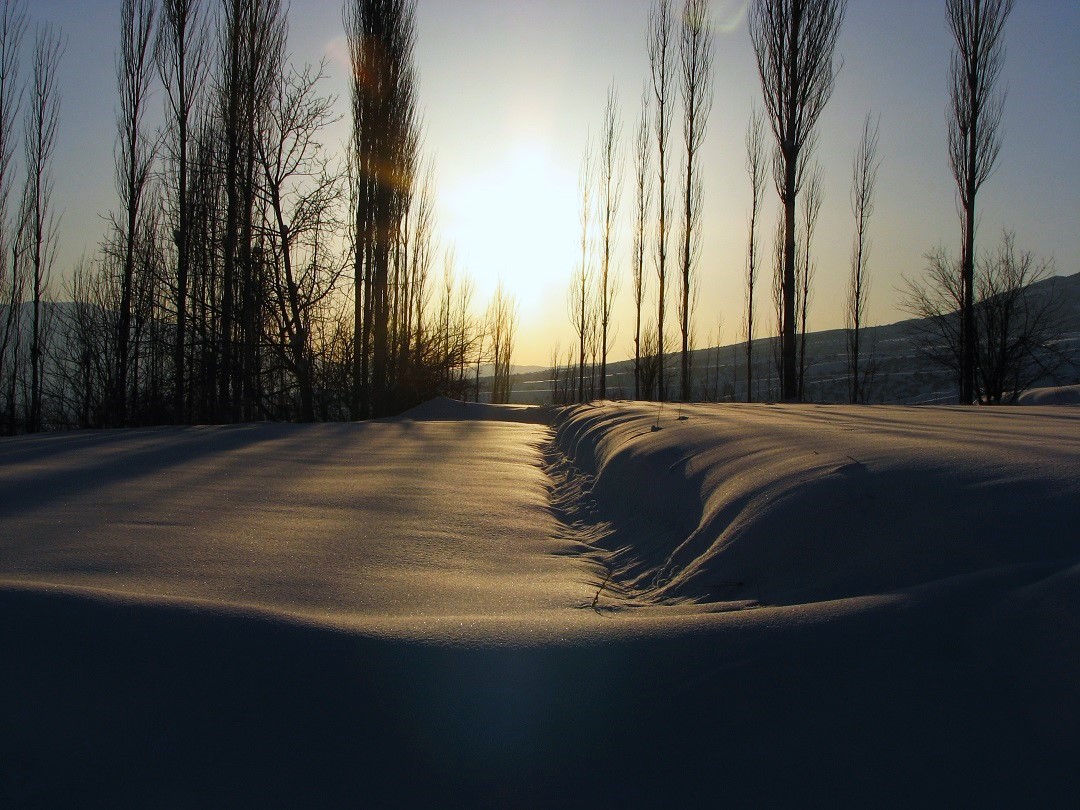 آفتاب در حال غروب کردن بود که به «سحرکوشان» رسیدم. کاملاً خیس و گِلی بودم و سرما آرام آرام داشت به درونم نفوذ می کرد. باید سریع تر راه می رفتم تا هم یخ نزنم و هم زودتر به خانه برسم. از دره گذشتم و در ابتدای سربالایی بودم که نور خورشید در پشت چند درخت که کاملاً بی برگ بودند بر روی برفها می تابید، انعکاس نور خورشید بر روی این برف سنگین تصویری را خلق کرد که نمی توانستم بی تفاوت از کنارش بگذرم. به شدت سردم بود و لباس ها در تنم در حال یخ زدن بود و همچنین نگران دوربین هم بودم ولی هر کار می کردم نمی توانستم جلو درنگ خودم را برای تماشای این منظره بگیرم.